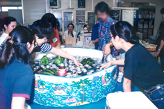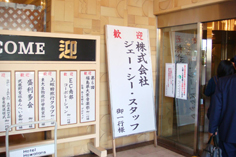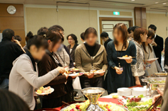 弊社のあるスイングビル最上階のホールを使用し、立食パーティー形式の社員慰労懇親会を年2回程度開き、社員間の交流・コミュニケーションをはかっている。 |